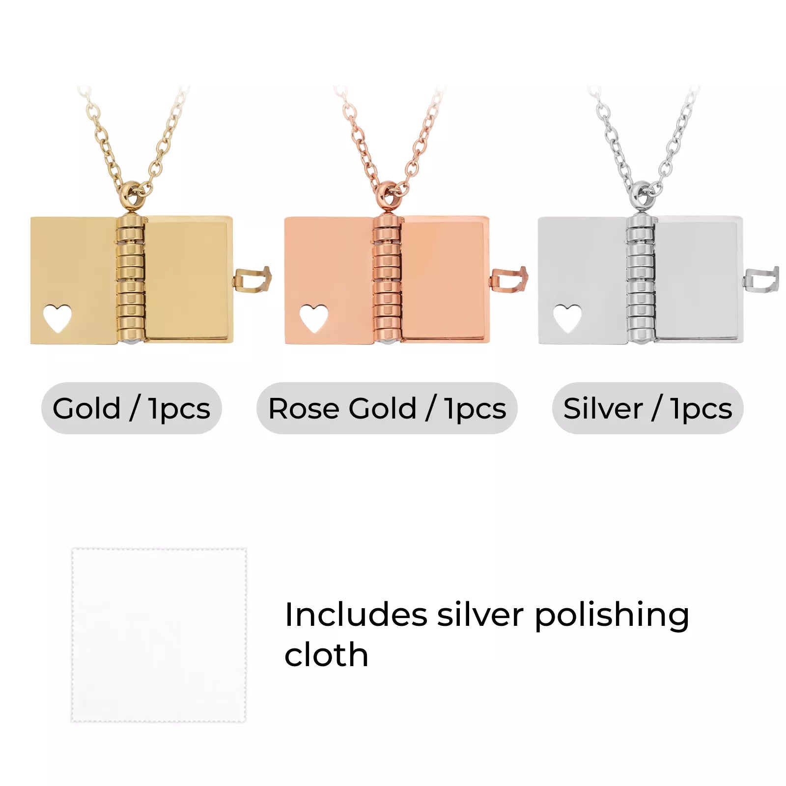 - Lieferumfang3 x Edelstahl Buch-Locket Halskette