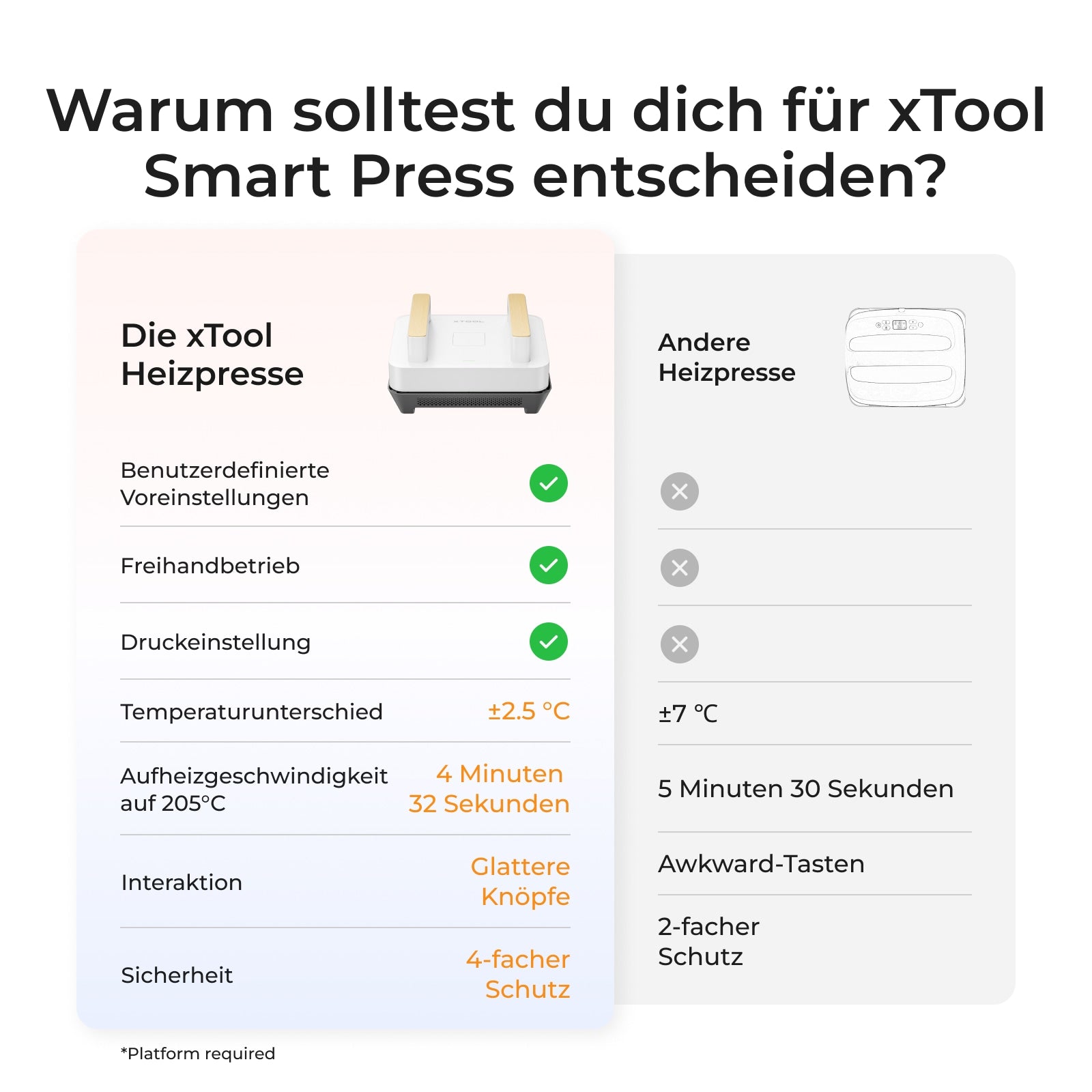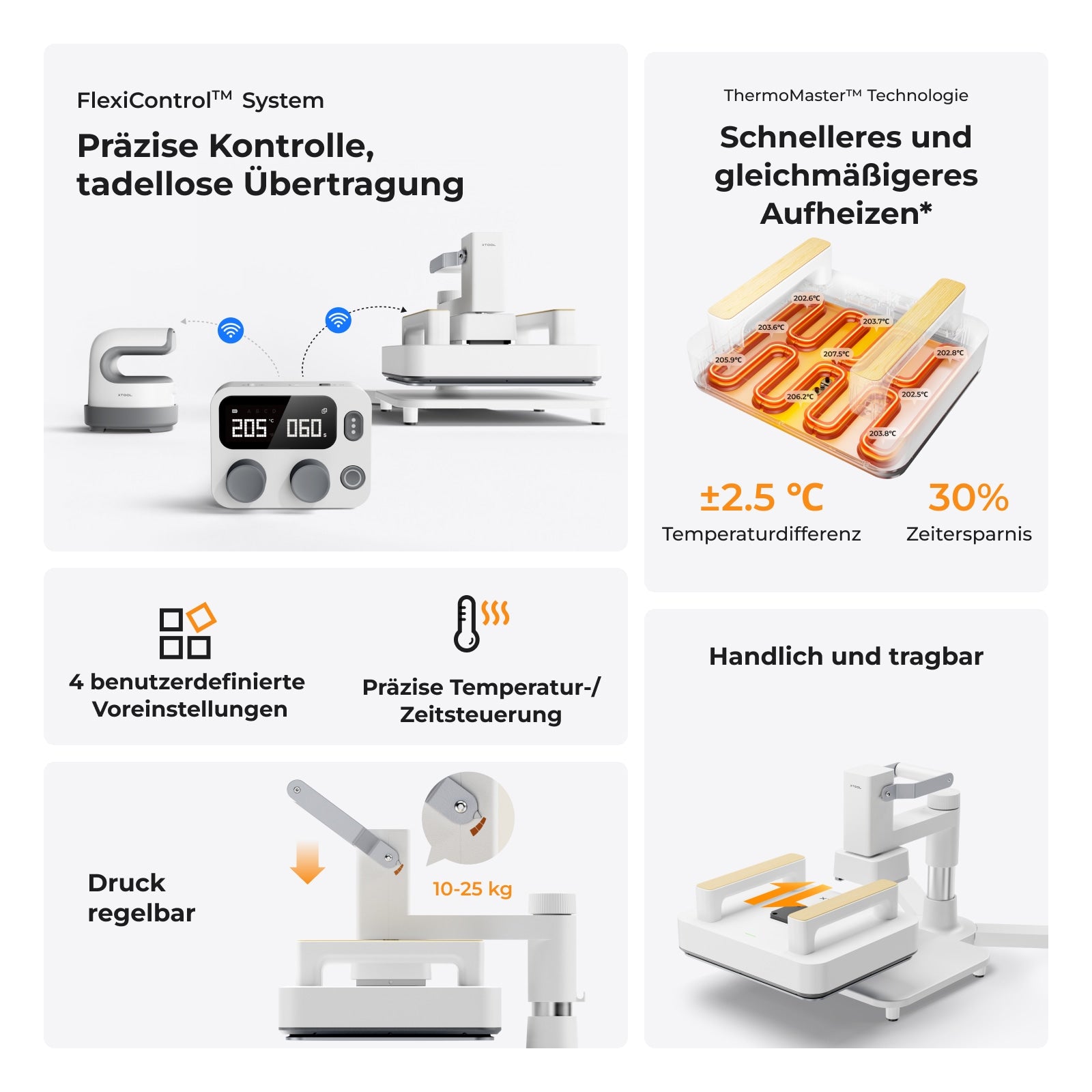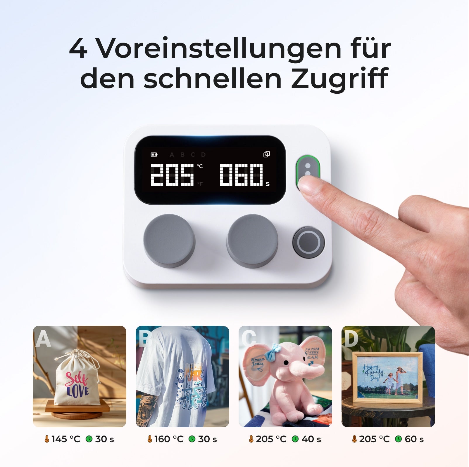 60s schneller als andere Heizpressen, die bis zu 204 ℃ aufheizen - keine langen Wartezeiten mehr.