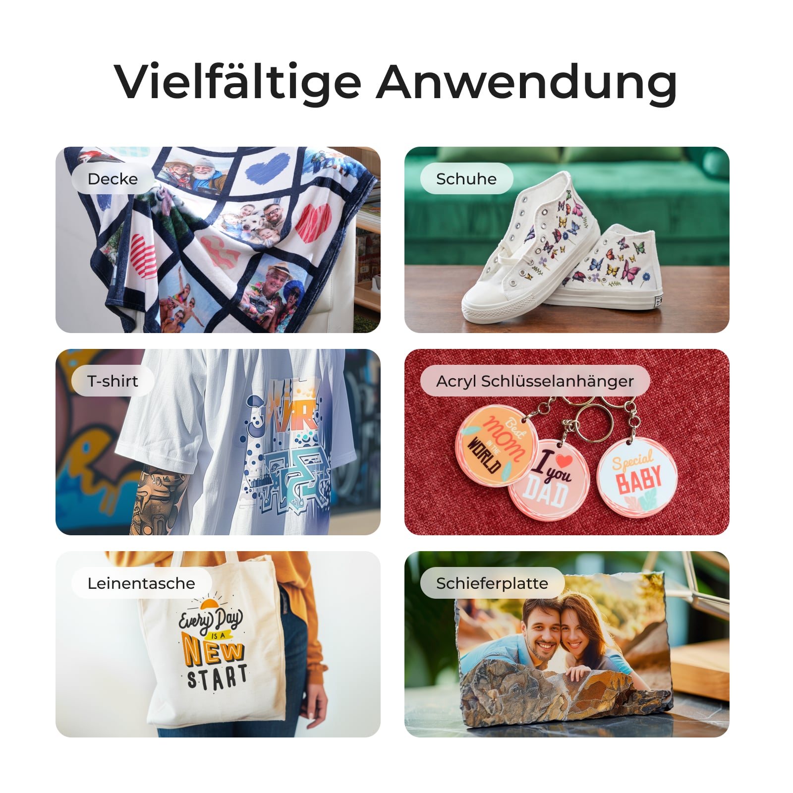 Liefert lebendigere Sublimation in kürzerer Zeit auf beschichtetem Holz und Stein im Vergleich zu anderen 180℃.
