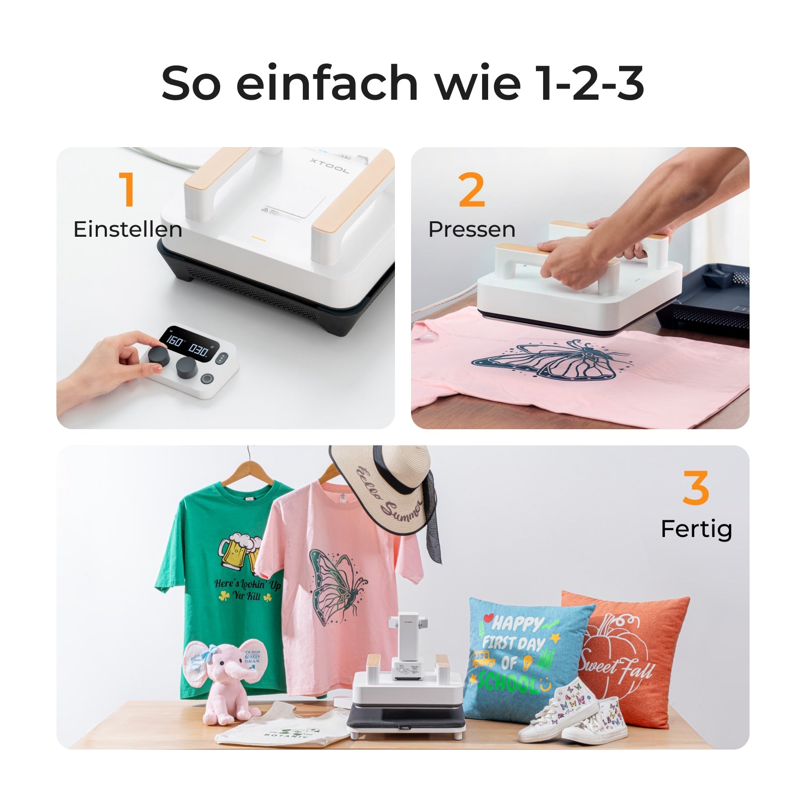 Flexible, tragbare oder freihändig zu bedienende Heizpressen erfüllen die meisten Übertragungsanforderungen von klein bis groß, weich bis hart, dünn bis dick.