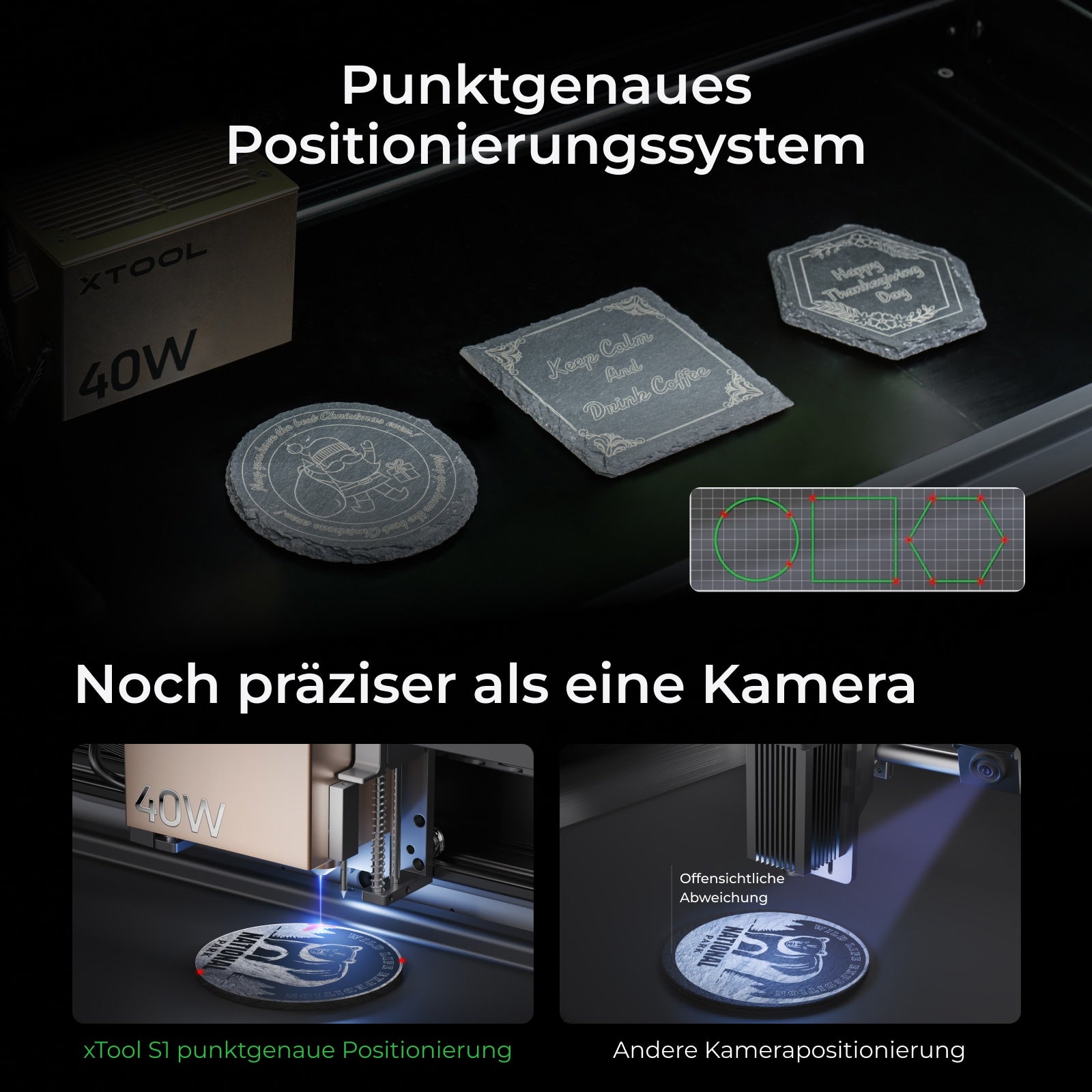 xTool S1 verwendet neuartige Encoder und Algorithmen, um ein präzises absolutes Koordinatenlayout zu erstellen und die Position des Lasermoduls in Echtzeit in der Software anzuzeigen.