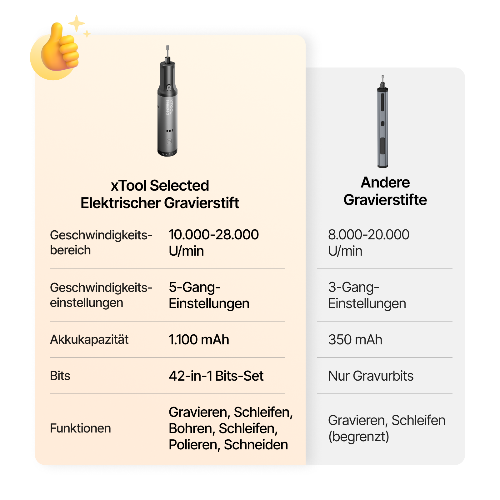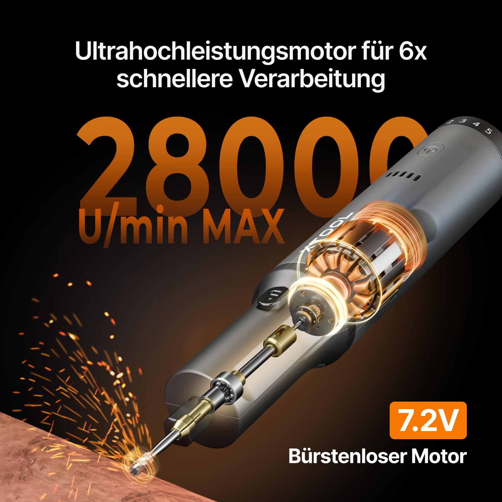 - Das elektrische Gravierstift-Set verfügt über hohe Leistung für langanhaltende Hochgeschwindigkeitsrotation und starkes Drehmoment, wodurch Polier-, Bohr- und Gravierarbeiten bequem und effizient durchgeführt werden können.