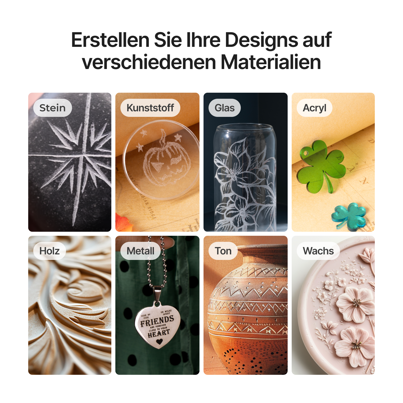- Kompakt und tragbar, lässt sich das elektrische Gravierstift-Set leicht mitnehmen, sodass du jederzeit deine kreative Handarbeit genießen kannst. Es eignet sich für Metall, Glas, Keramik, Leder, Holz, Schmuck, Stein oder Skulpturen.
