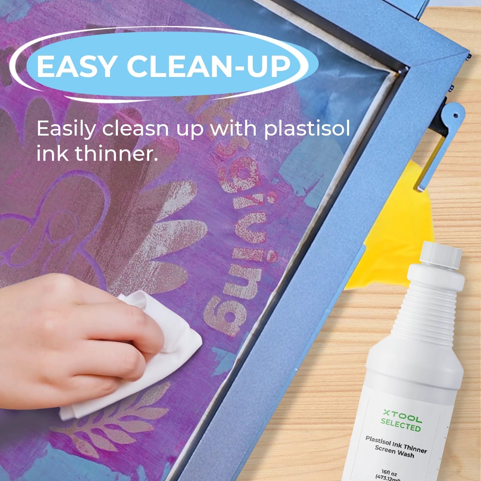 - Du kannst deine Siebe und Werkzeuge einfach mit Plastisol-Tintenverdünner abspülen.