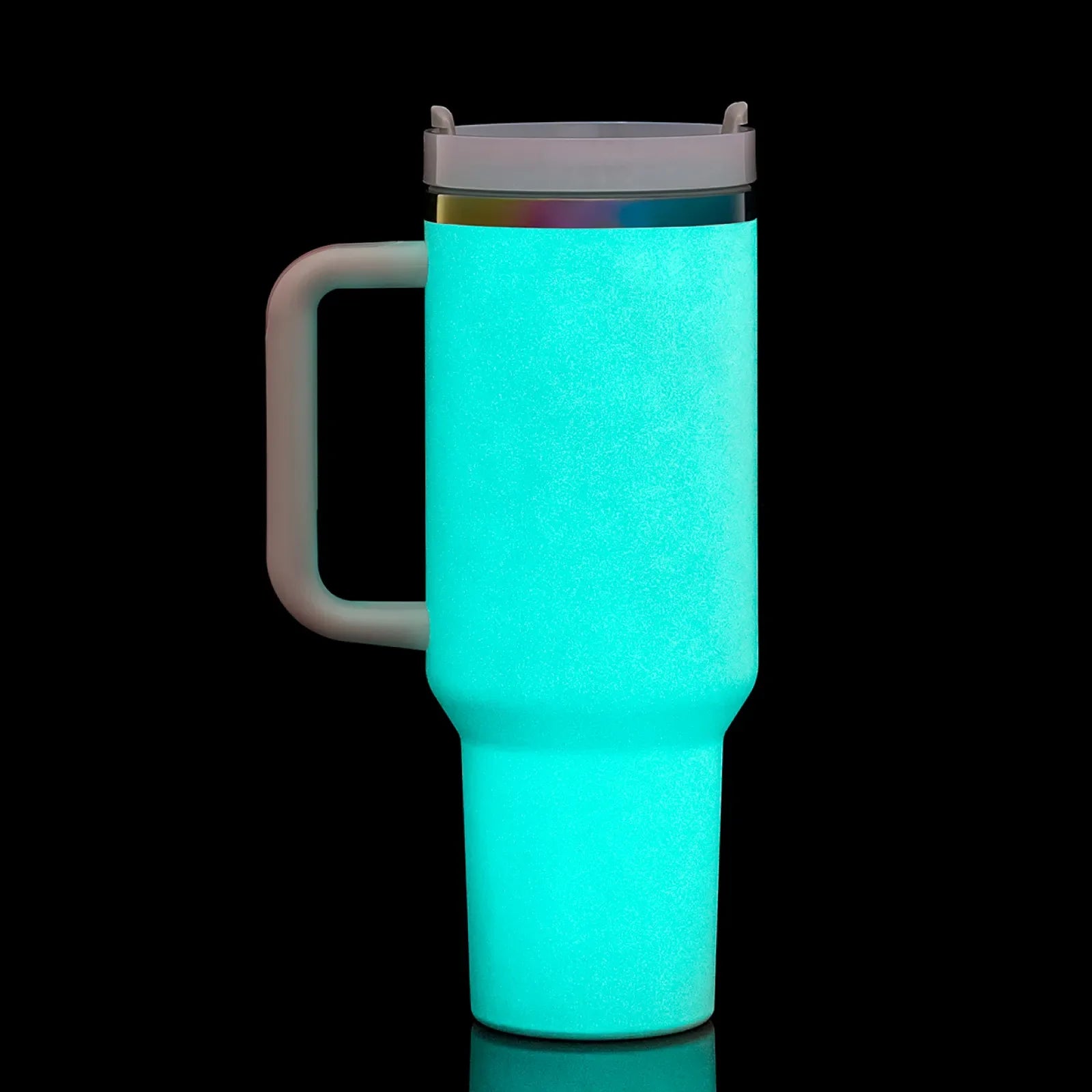 - Dieser Becher ist mit einer speziellen Nachleucht-Beschichtung versehen, die UV-Strahlen (Sonnenlicht) aufnehmen muss, um den Leuchteffekt zu aktivieren. Im Dunkeln strahlt er ein traumhaftes Blaugrün aus und schafft eine bezaubernde Atmosphäre. Perfekt für die Nutzung am Abend – und die coole Farbe ist ideal für Partys!