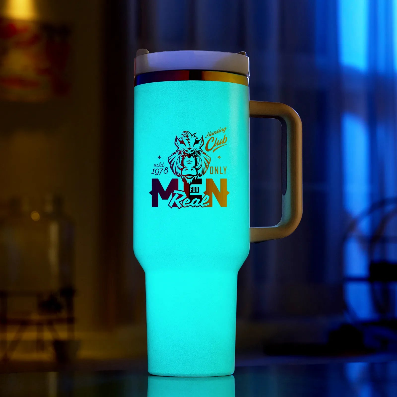 1 × rosa bis irisierender, im Dunkeln leuchtender Edelstahl-Trinkbecher mit abnehmbarem Griff - Kompatible MaschineAlle xTool-Maschinen