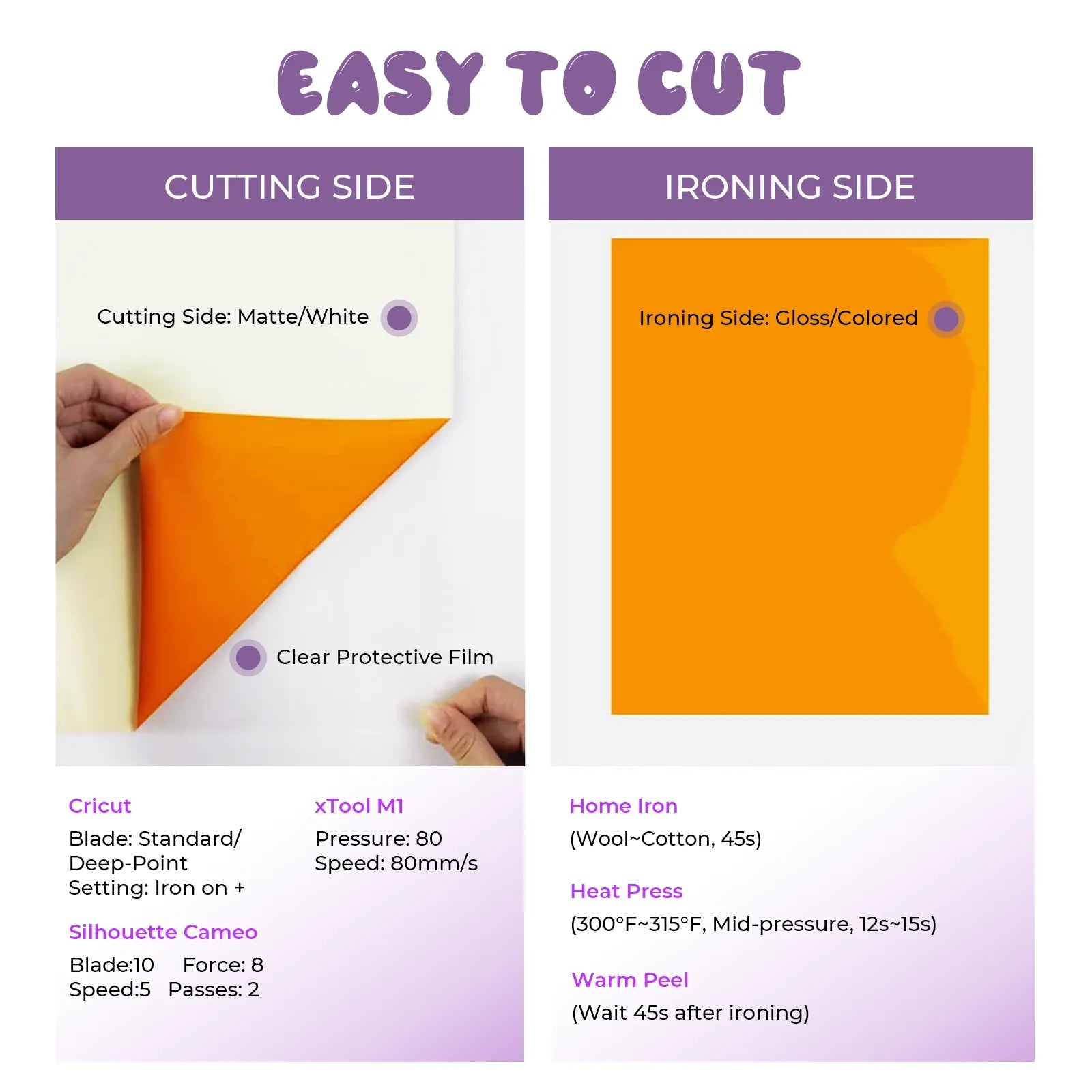 - Laser-sicher & PVC-frei: Diese Heat-Transfer-Folie bietet eine PVC-freie Alternative zu herkömmlicher Folie (die beim Lasern schädliche Dämpfe freisetzen kann). Unsere laser-sichere Folie ist speziell für geschlossene und belüftete Lasersysteme entwickelt und sorgt für ein gesünderes Bastelerlebnis, ohne Kompromisse bei der Qualität.