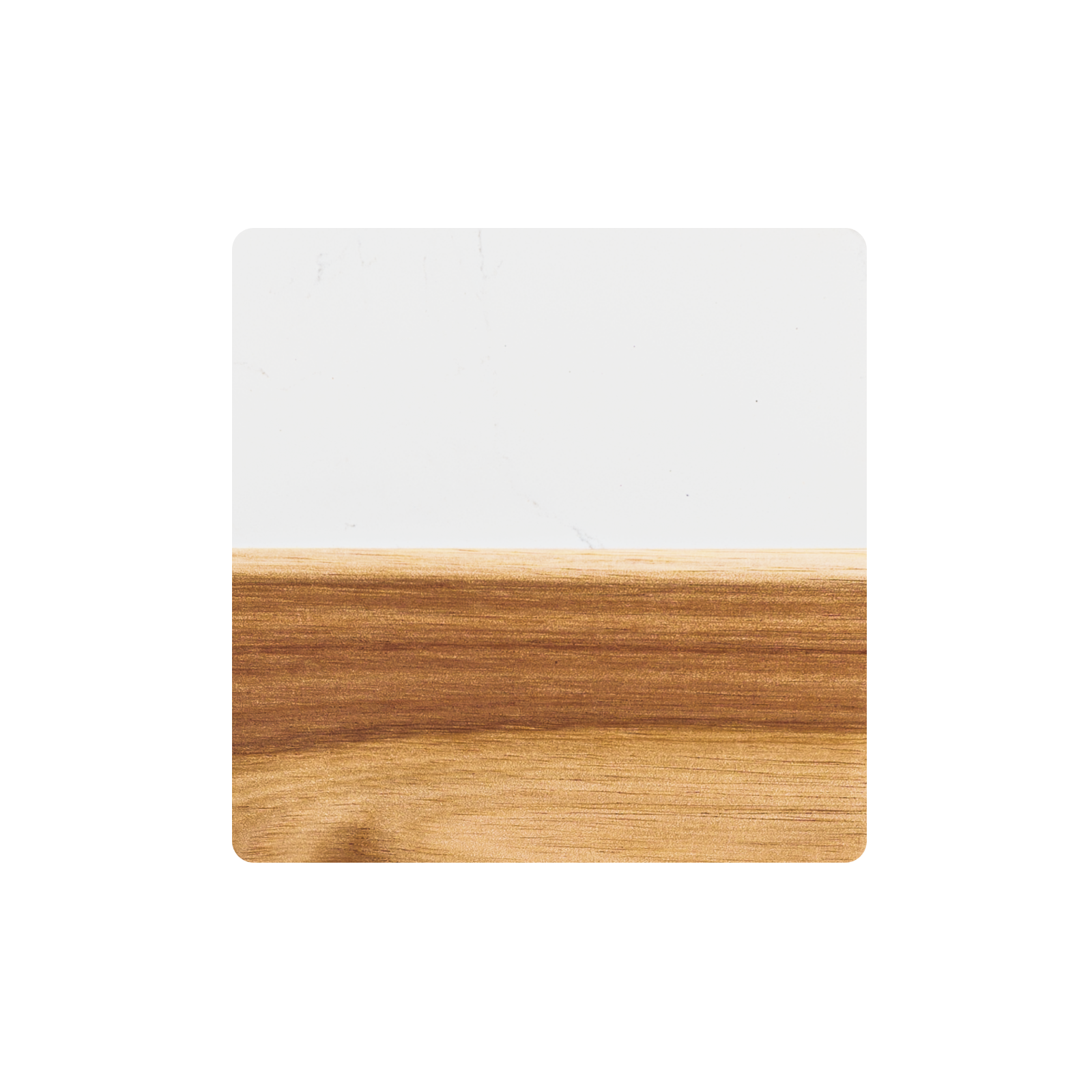 - Lieferumfang4 × quadratische Weiß-Marmor- und Holzuntersetzer