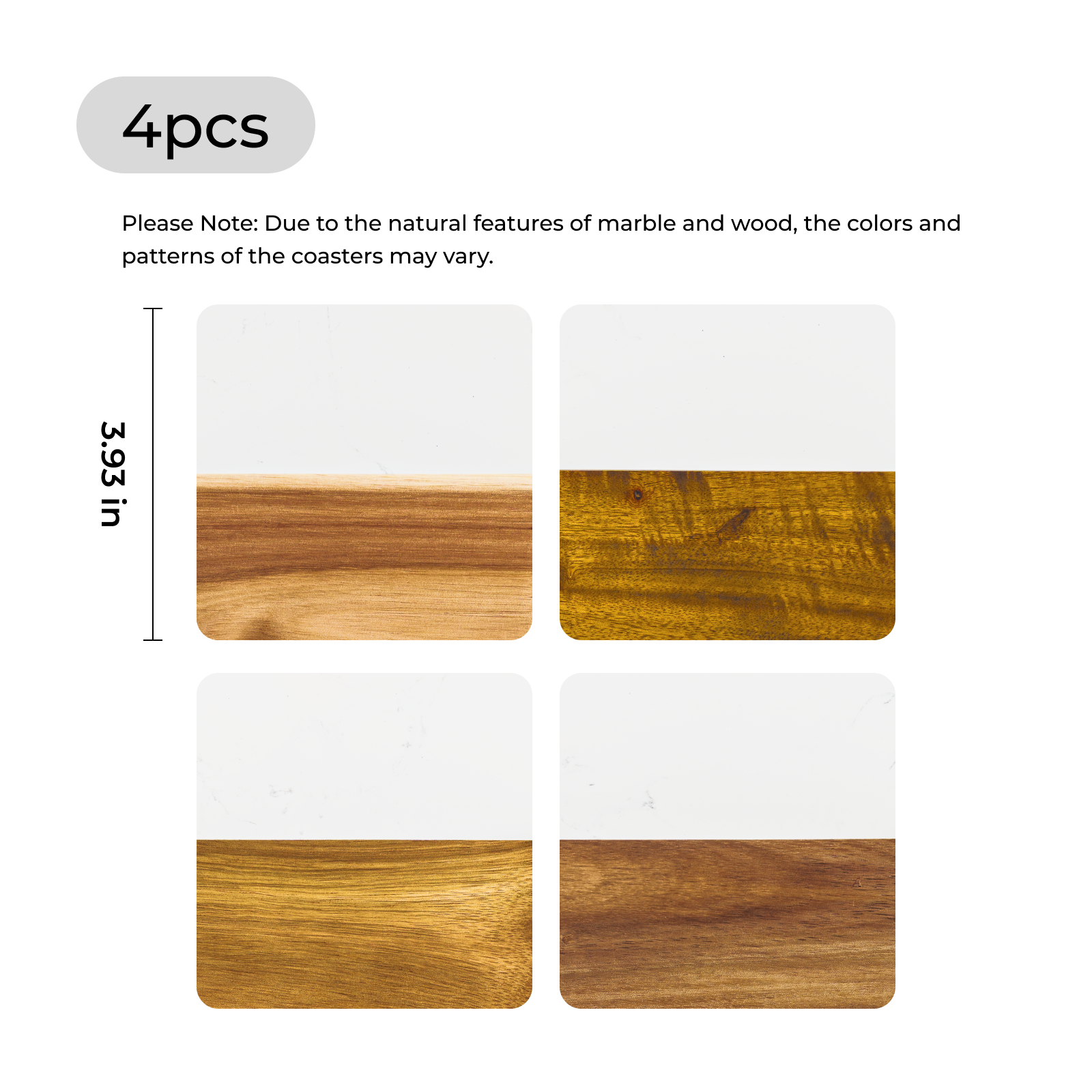 - Hinweis: Da Holz und Marmor Naturmaterialien sind, können leichte Unterschiede in Maserung und Farbe auftreten, was den einzigartigen Charme jedes Untersetzers ausmacht.