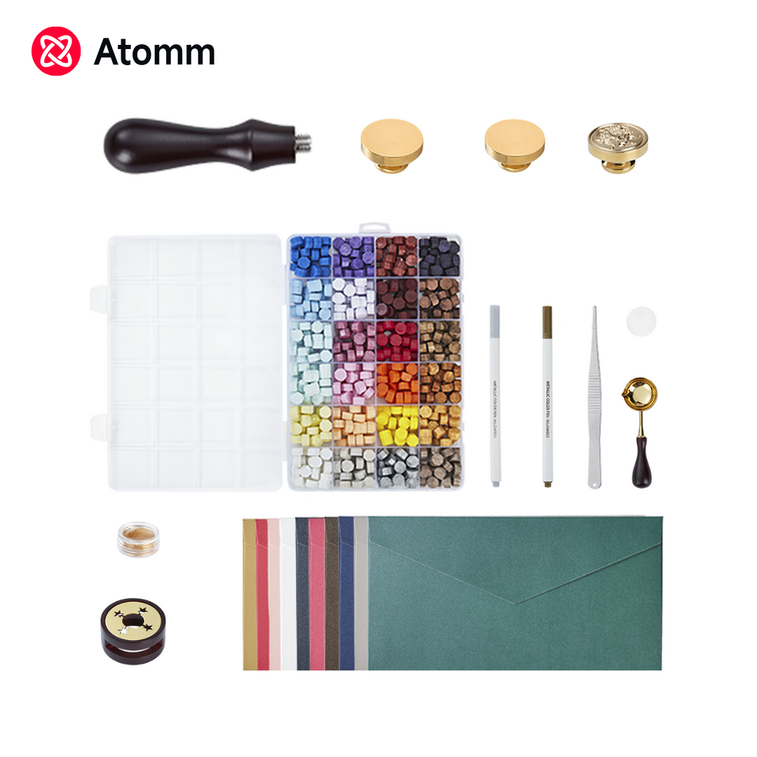 - Das Wachssiegel-Stempel DIY-Set enthält 24 Farben Wachssiegel-Perlen, 1 Wachssiegel-Ofen, 1 Wachssiegel-Löffel, 1 Wachsstempel-Griff, 1 Pinzette, 10 Teelichter, 2 Metallstifte, 10 Umschläge, 2 Goldpulver und 3 Wachssiegel-Stempelköpfe. Ein Messingstempelkopf mit Rosenmuster sowie zwei blanke Messingstempelköpfe stehen zur Gravur mit dem xTool F1 Ultra zur Verfügung. Klicke hier für Bearbeitungs-Design-Dokumente und Montageanleitungen.