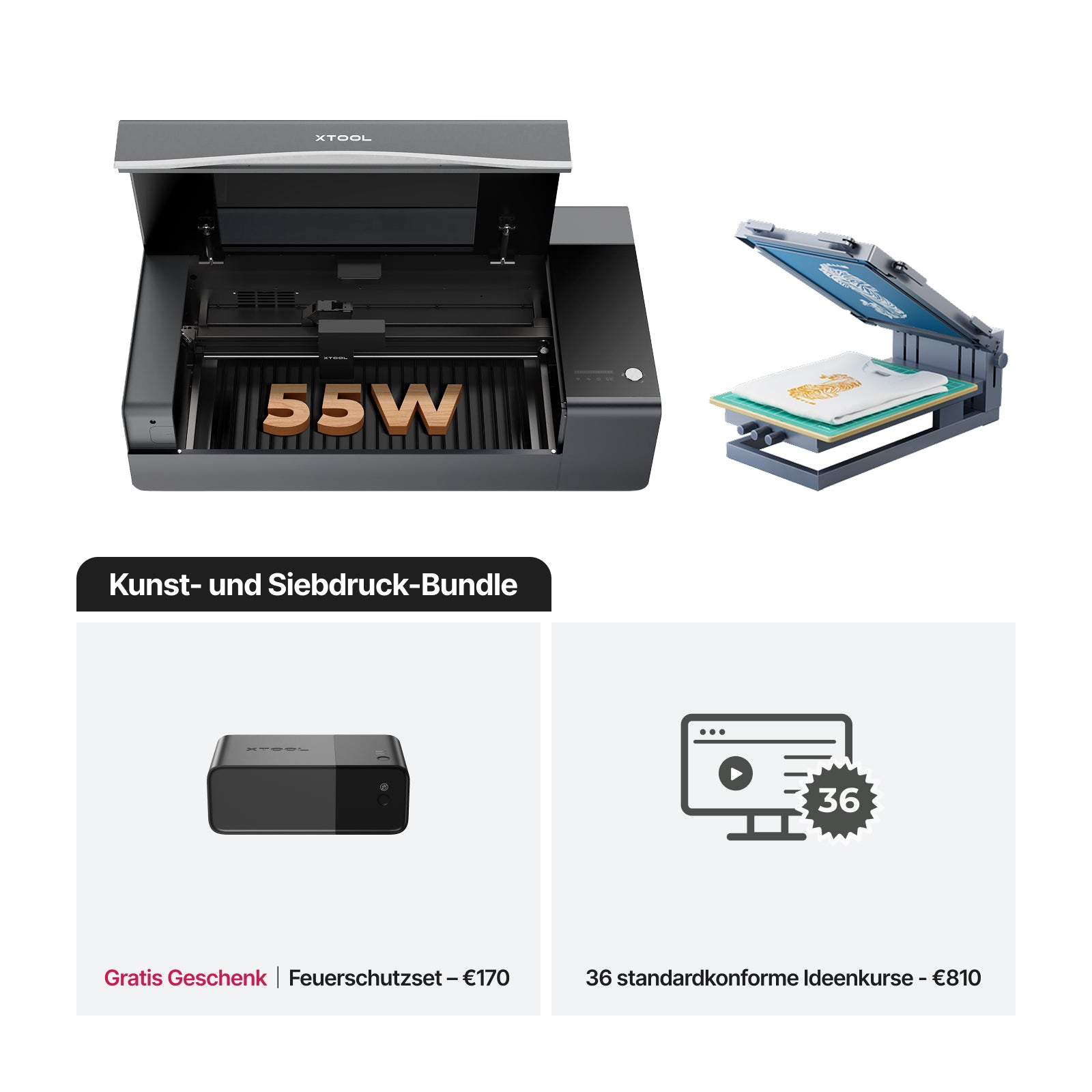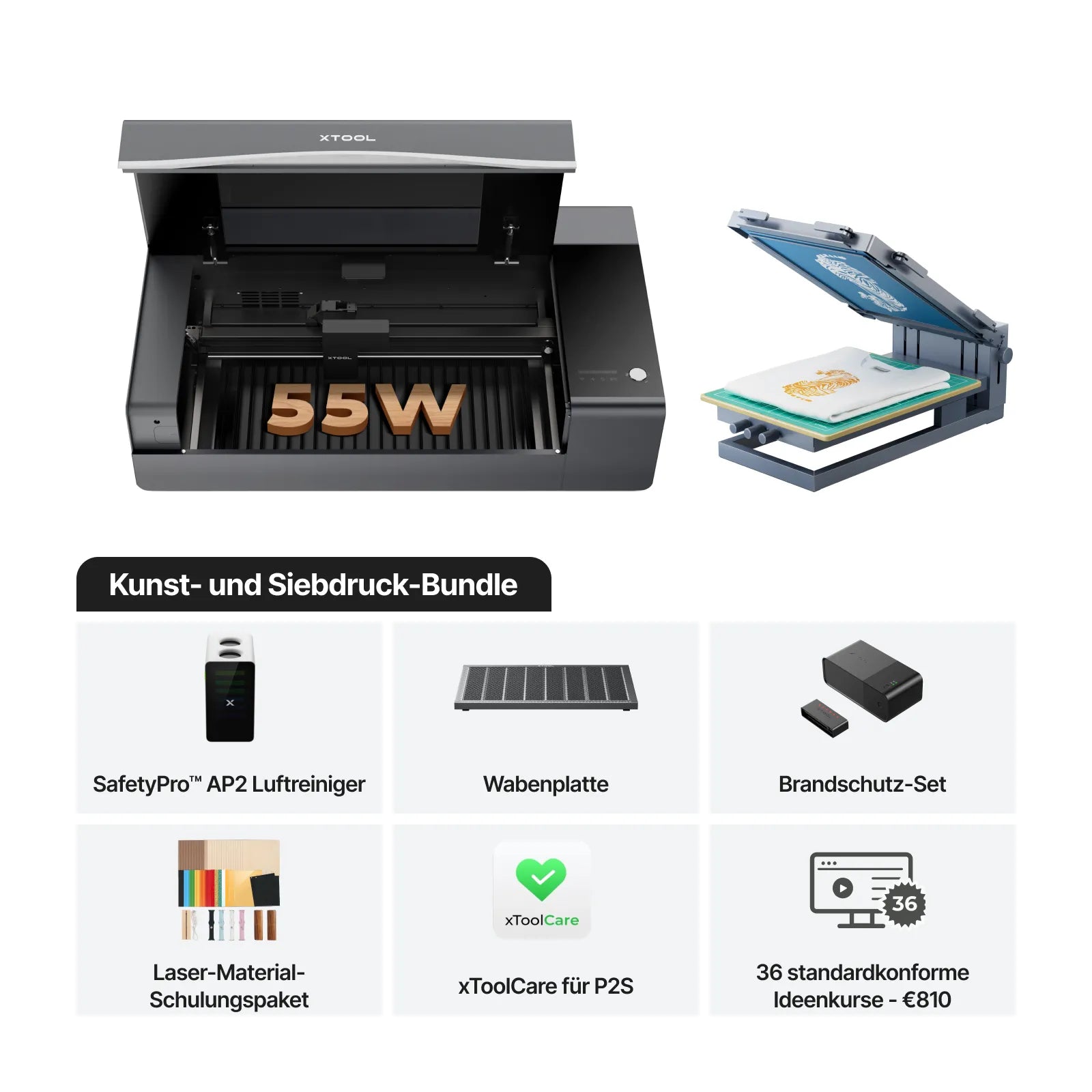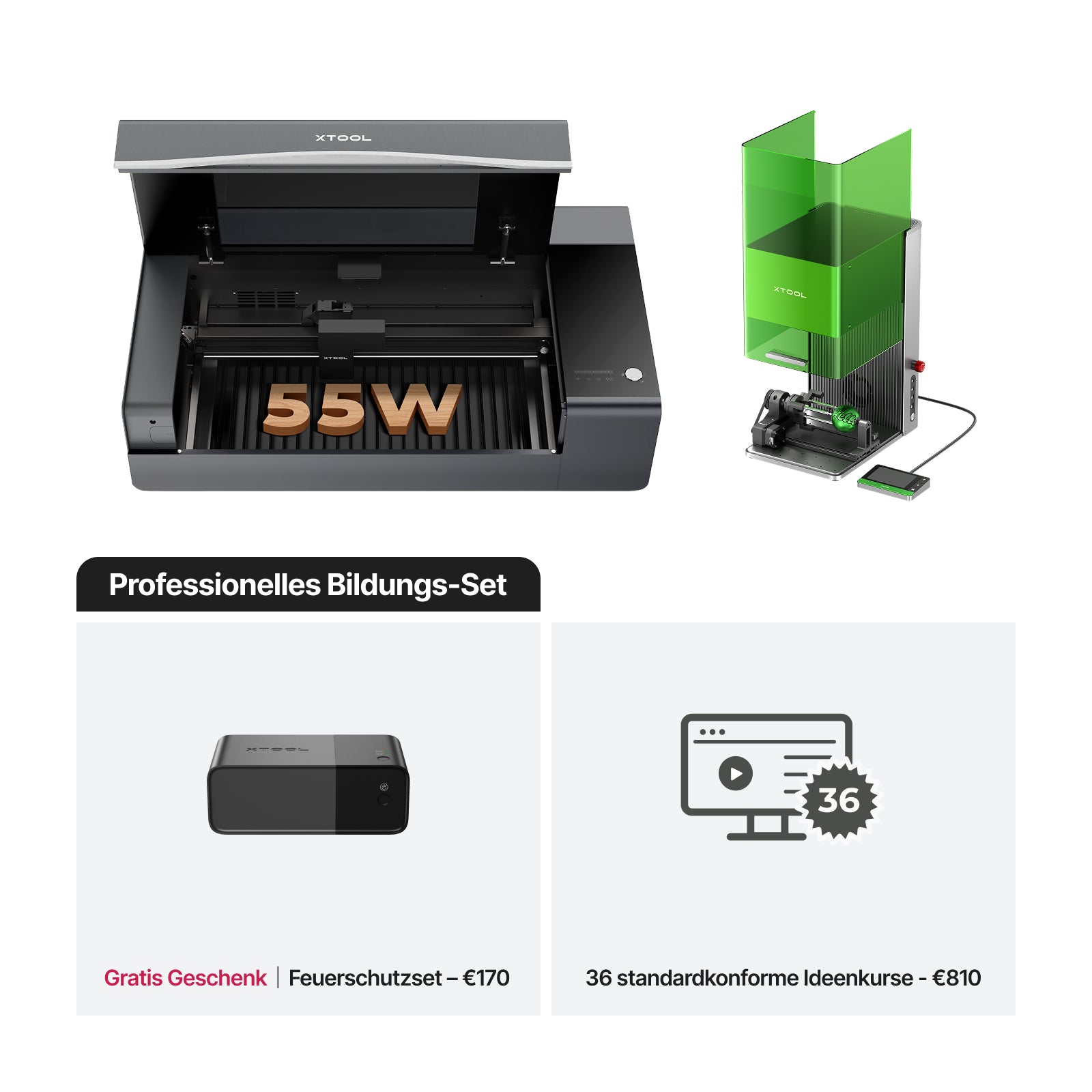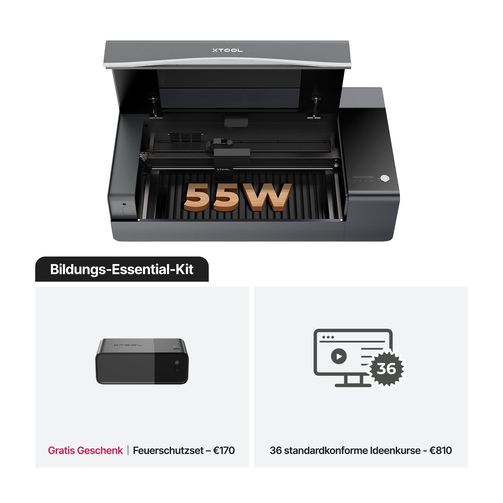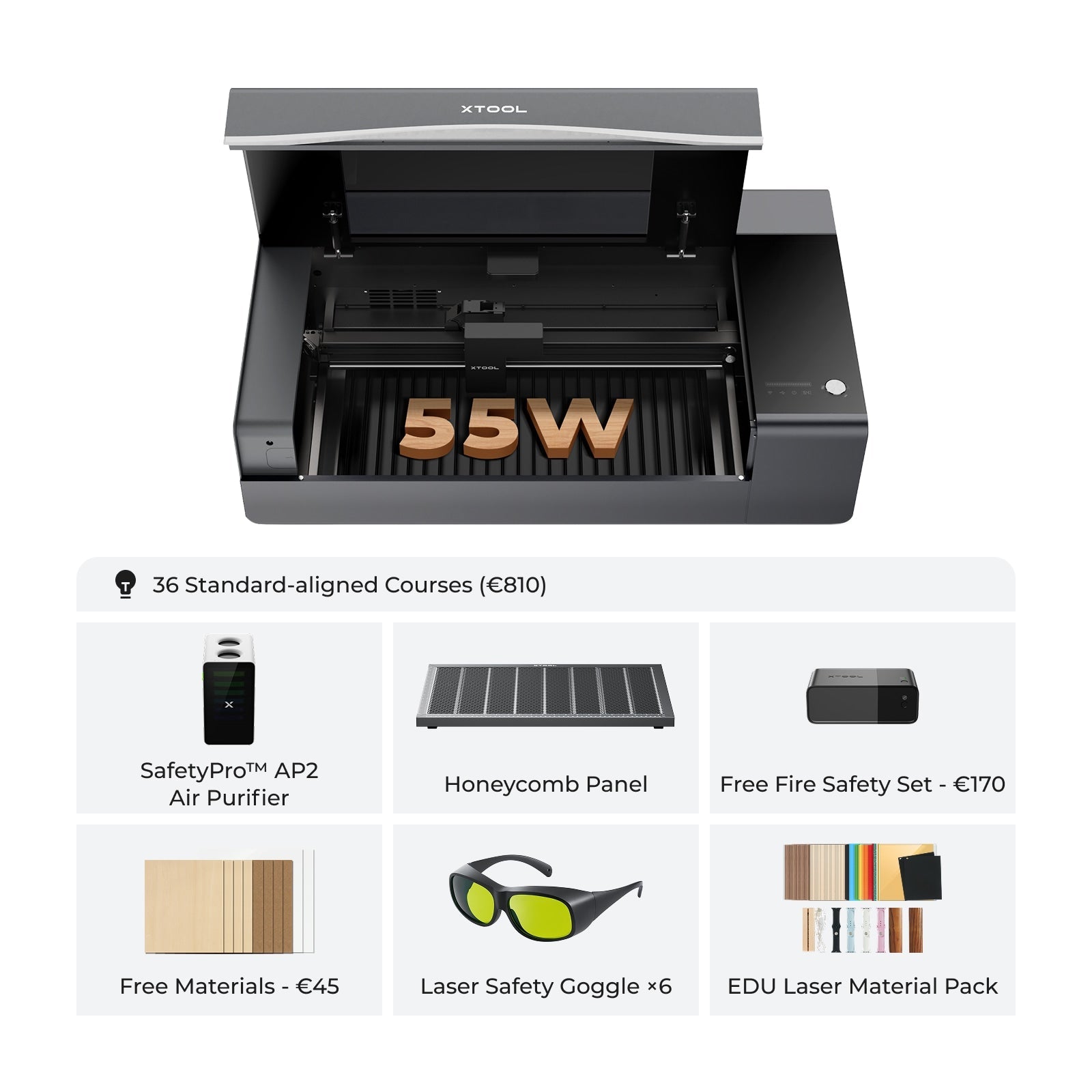 Das xTool P2S ist sowohl in den Optionen Klasse 4 als auch Klasse 1 erhältlich, während das Bildungsbundle ein Klasse-1-Gerät für hochsichere Umgebungen umfasst.