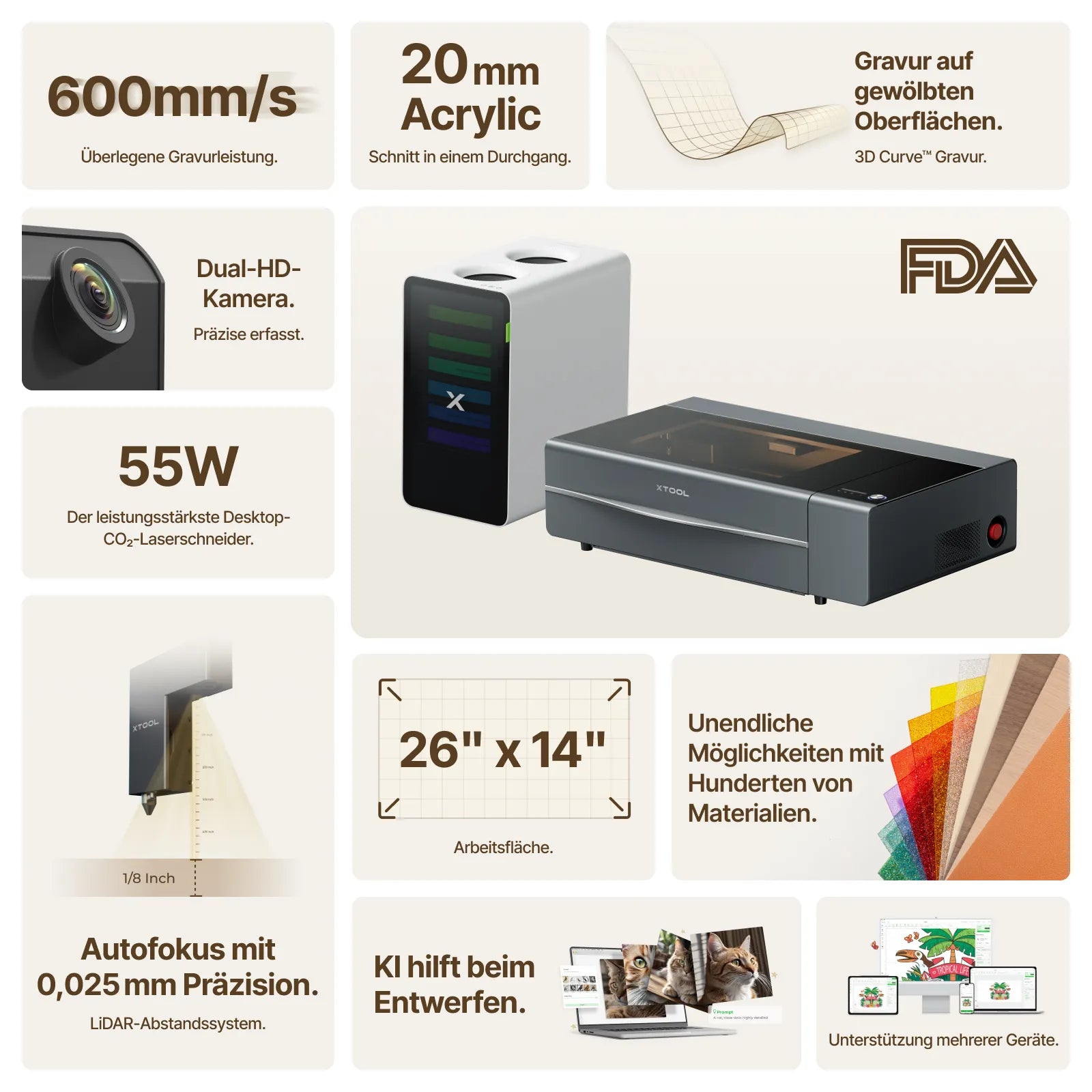 Dieser Vergleich hilft Ihnen, xTool-Produkte zu verstehen, ohne bestimmte Marken oder Produkte zu nennen.