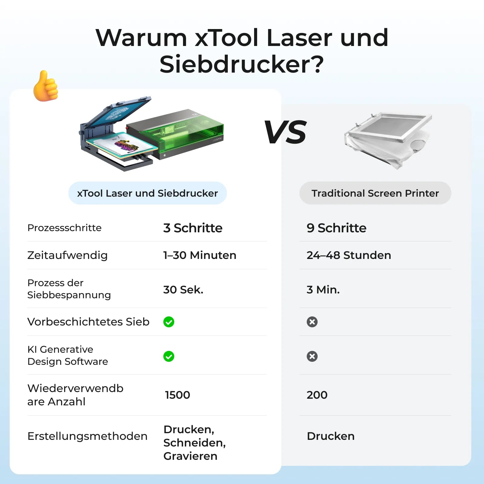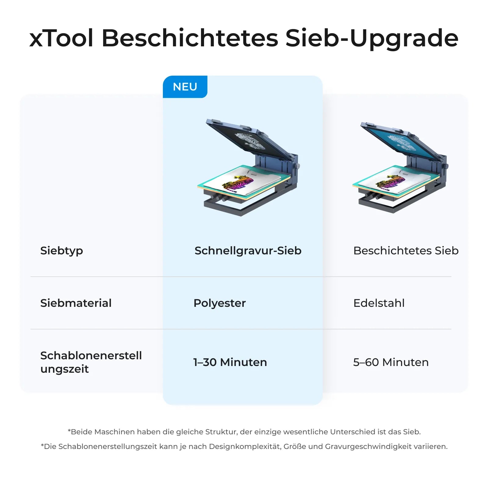 The traditional stencil-making process with exposure and high-pressure washing may lead to graphic distortion, especially for unseasoned beginners, resulting in loss of design intricacies. xTool's solution employs lasers to craft the screen directly, minimizing inconsistency.