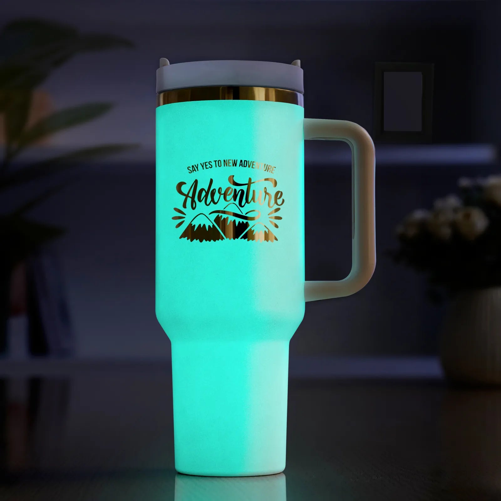 1 × cremeweißer bis goldener, im Dunkeln leuchtender Edelstahl-Trinkbecher mit abnehmbarem Griff - Kompatible MaschineAlle xTool-Maschinen